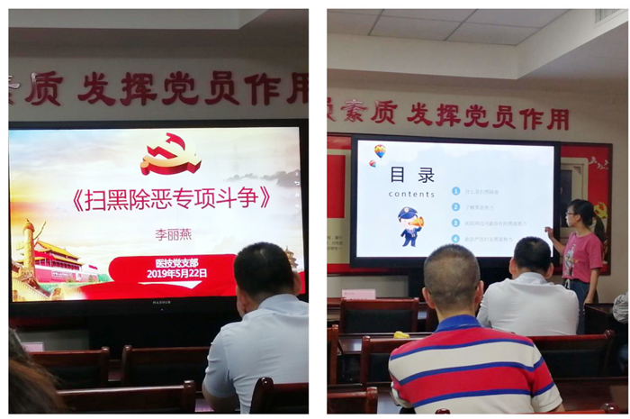 随后李丽燕同志为大家带来一场漫画与现实相结合的通俗易懂、引人入胜的“打黑除恶”专题报告。大家通过学习明白在我们身边什么是真正的“黑”,什么是真正的“恶”,以及相关的政策、战略部署等。李丽燕同志还结合医务工作者实际,总结了医院周边可能存在的黑恶势力,以及我们党员要发挥的作用,引起大家共鸣。