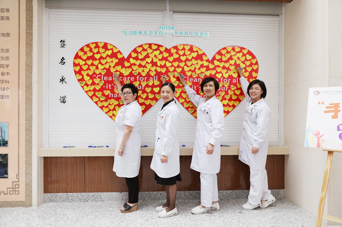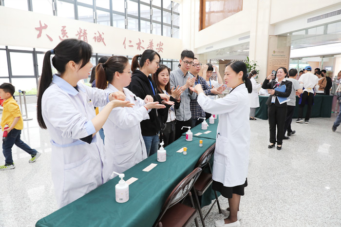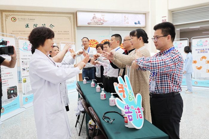 5月6日上午,我院在综合楼一楼大厅举行了院内“世界洗手日”现场活动,王庆来书记、朱文宗院长、缪心军副院长、医生护士及工勤人员代表担任了医院手卫生形象大使。