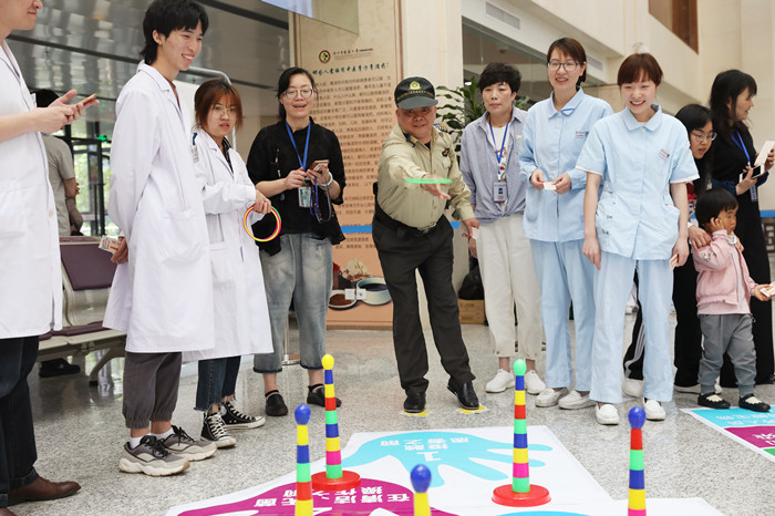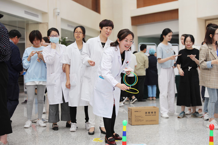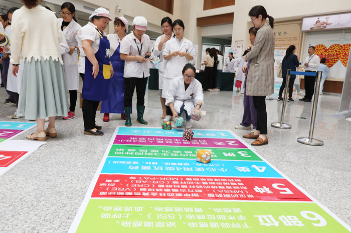 活动现场气氛热烈,有七步洗手法演示互动,有趣味游戏:(1)抗击感染(丢沙包)配合内容有感控七步曲、WHO手卫生五大时刻;(2)精准感控(套套圈)配合内容有标准预防措施及多重耐药菌预防与控制等。这次活动将医院感染管理相关知识融合到游戏中,形式寓教于乐,共吸引400余名医护人员、工勤人员、患者及家属积极参与,受到大家的欢迎,感控意识深入人心。