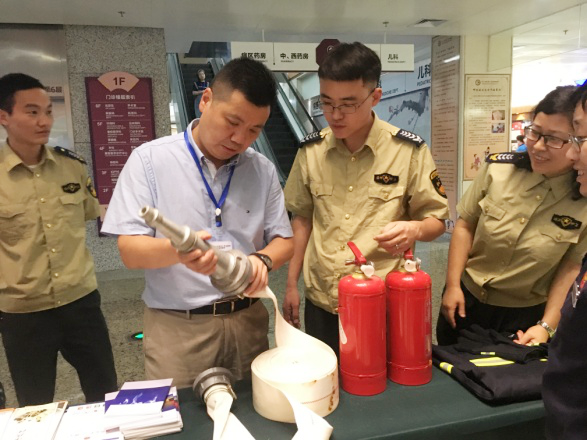 为提高大家的学习热情,活动设置了安全知识咨询服务、消防装备教与学展示、灭火实操演练、“想安全事,上安全岗,做安全人“签名活动、答题抽奖活动等环节。活动主要内容是由保卫科消防员向参与活动的人员一对一教学灭火器、消防水带、防毒面具、应急手报等的使用方法,为医院职工及来往院区的广大群众提出的安全问题进行答疑解惑,针对灭火器不会使用的人员,开展实操演练,并在醒目处放置安全知识宣传易拉宝,向社会公众宣传安全用火、用电、火场逃生等安全知识,受到了群众的一致好评。