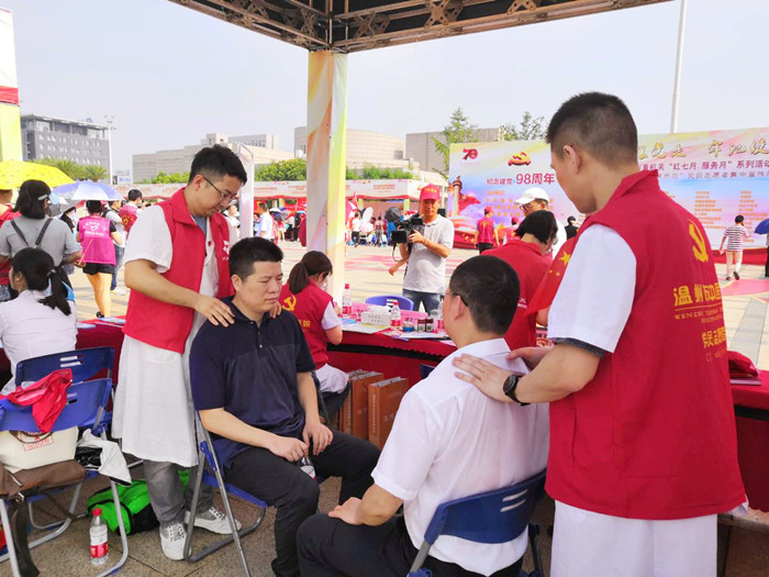 活动现场,党员志愿者摆设摊位,开展了具有浓浓中医院特色的“冬病夏治”、“耳穴埋豆”、针灸推拿、中药材识别、健康咨询等义诊项目,受到市民的欢迎。