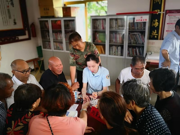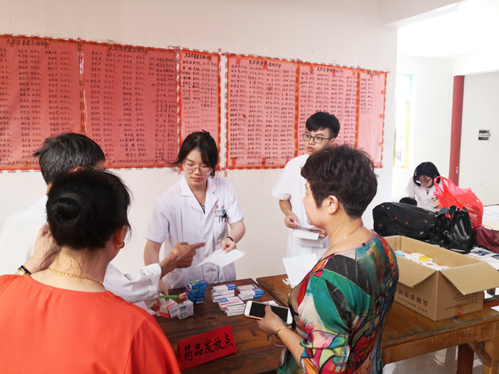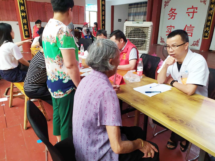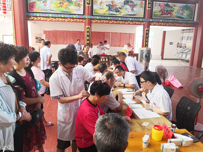 7月7日上午,在消化科曾耀明主任的带领下,由我院消化内科、心血管内科、普内科、妇产科、针灸科等科室组成的义诊团队走进了大门镇小门村村委文化礼堂,摆放好义诊所需的一些器材和药品,迎接居民群众的到来。