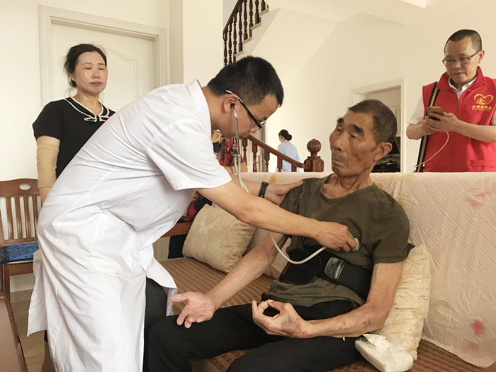 义诊结束后,曾耀明主任携部分医护人员在大门卫镇中心卫生院医务人员的带领下,前往当地一些行动不便的老年病人家里,为他们检查身体状况,了解用药情况,进行现场指导,真正送医送药到家。