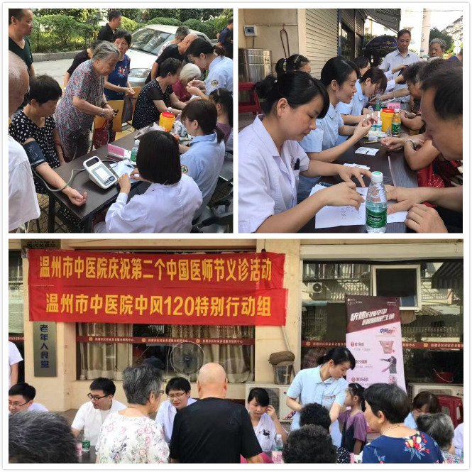 2019年8月18日,为迎接8月19日第二届中国医师节,在院领导的支持下,内科支部联合神经内科中风120特别行动组一行15人,来到水心桂柑社区开展大型义诊活动,渡过了一个健康、温暖、有爱的医师节。