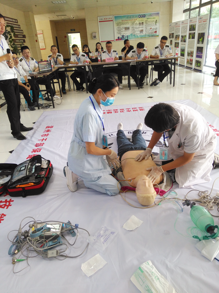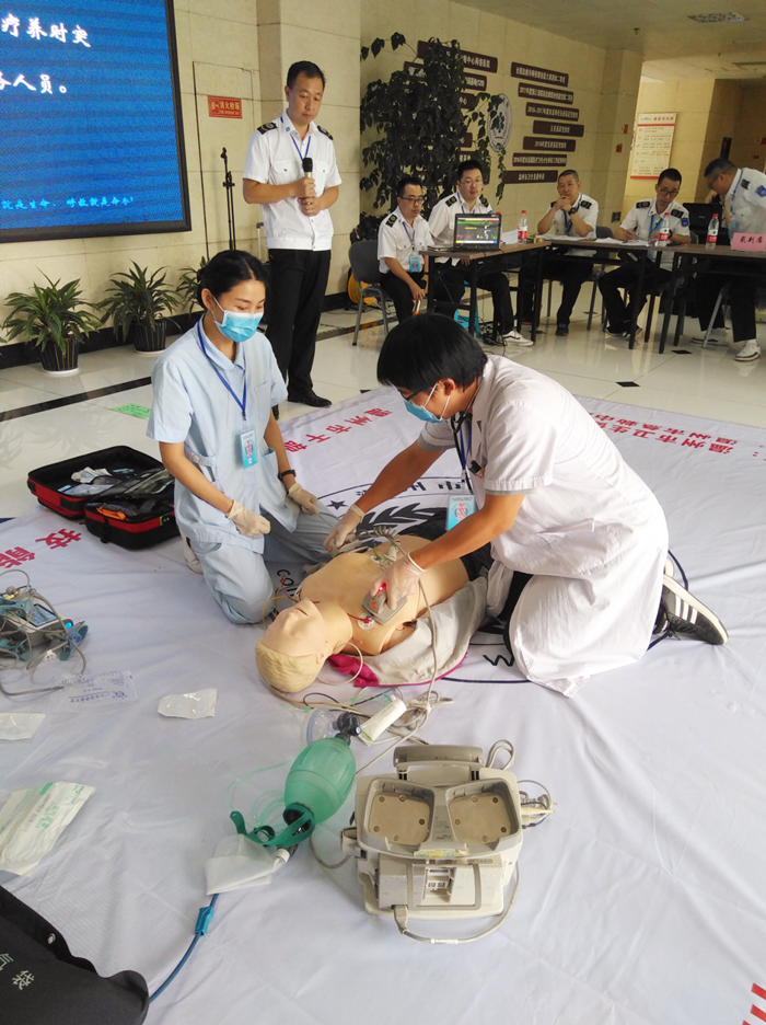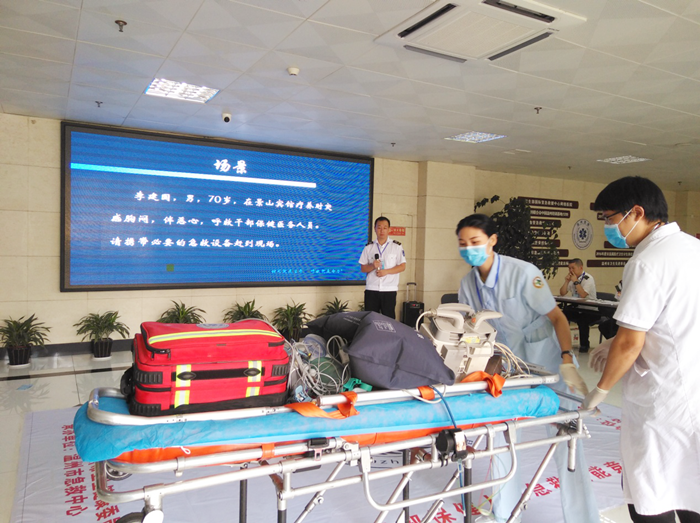竞赛分为理论知识和操作技能两部分内容,理论知识部分采取笔试形式,操作技能部分采取现场模拟操作形式。操作技能部分需要医护及时准确判断保健对象病情,现场做出心电监护诊断,建立静脉通路合理使用急救药物,进行电除颤和心肺复苏等急救操作,对保健对象进行院前转运。领队员需要在现场与接诊医院进行电话沟通,报告现场救治情况,下达救治任务,向带队领导报告现场救治等情况。带队领导需要对急救做好统筹安排。