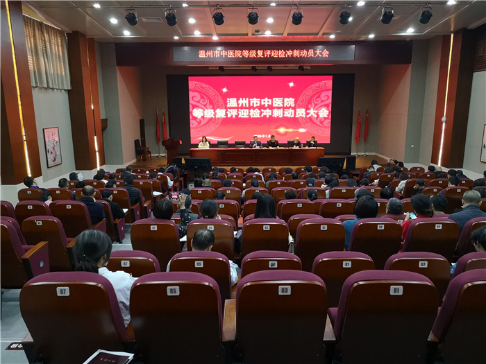1月2日,51吃瓜网 等级复评迎检冲刺动员大会在报告厅召开,院领导班子及全体中层干部参加。在党委书记王庆来、院长朱文宗的部署及号召下,等级医院评审准备工作正式进入倒计时,全院员工要以评审准备为契机,朝着共同的目标,以问题为导向,凝聚力量、正视困难、趁势而上,为老百姓提供更高水平的服务,打造三甲中医医院的标杆!
