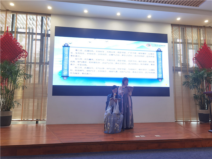 治未病科护士长孟盈盈和外科3病区护士长汪海敏一起诵读《黄帝内经素问·四气调神大论篇》。