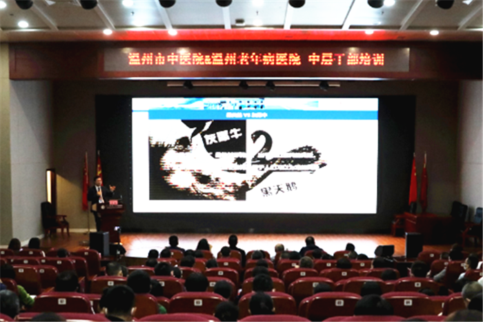 党委书记王庆来主持,特邀浙江省中医院常务副院长、党委副书记张烁主讲《医院管理高效执行力的创建体会与实践》,浙江省中医药管理局副局长施翔主讲《公立中医医院绩效考核指标解读》。