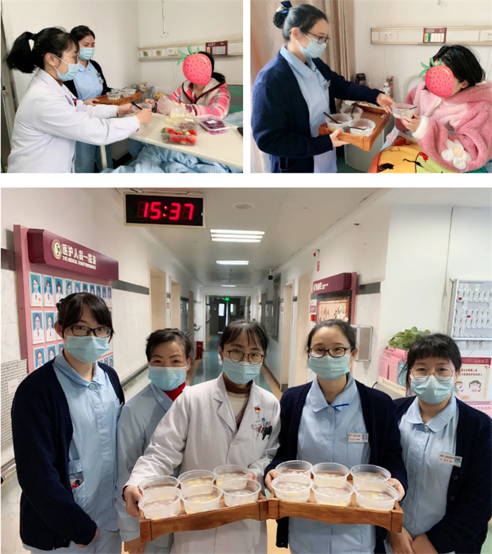 妇科2冬至送“圆满”活动如约而至。为了让住院孕妈感受到家的温暖和医护人员的关怀,妇科2全体工作人员向孕妈们送上暖冬汤圆。
