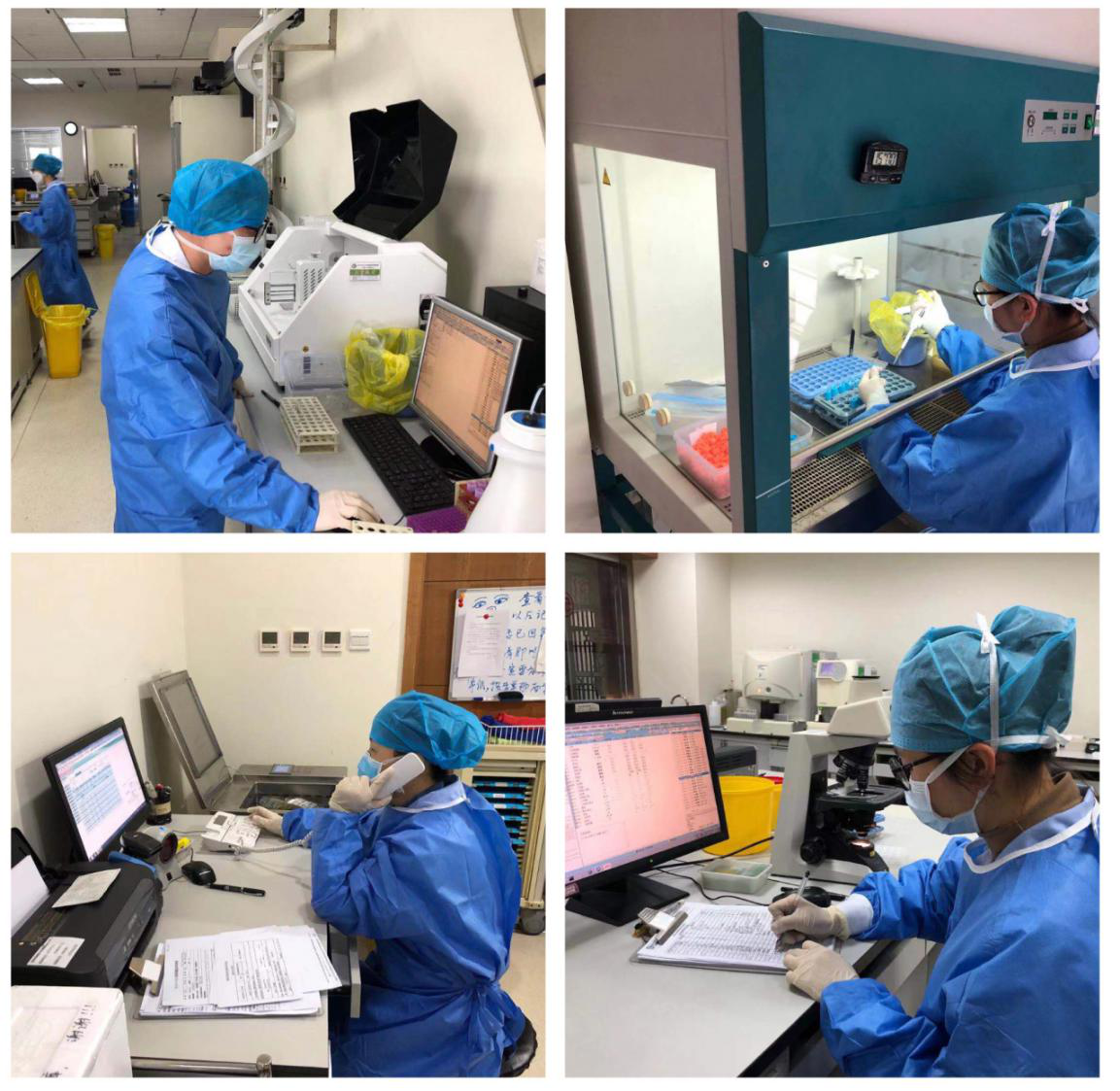 科室里的党员同志们身先士卒,负责检测工作的六名人员中有五位党员,他们不惧风险,身着“重”装,全力以赴,义无反顾地担负起新冠病毒检测的重要任务!