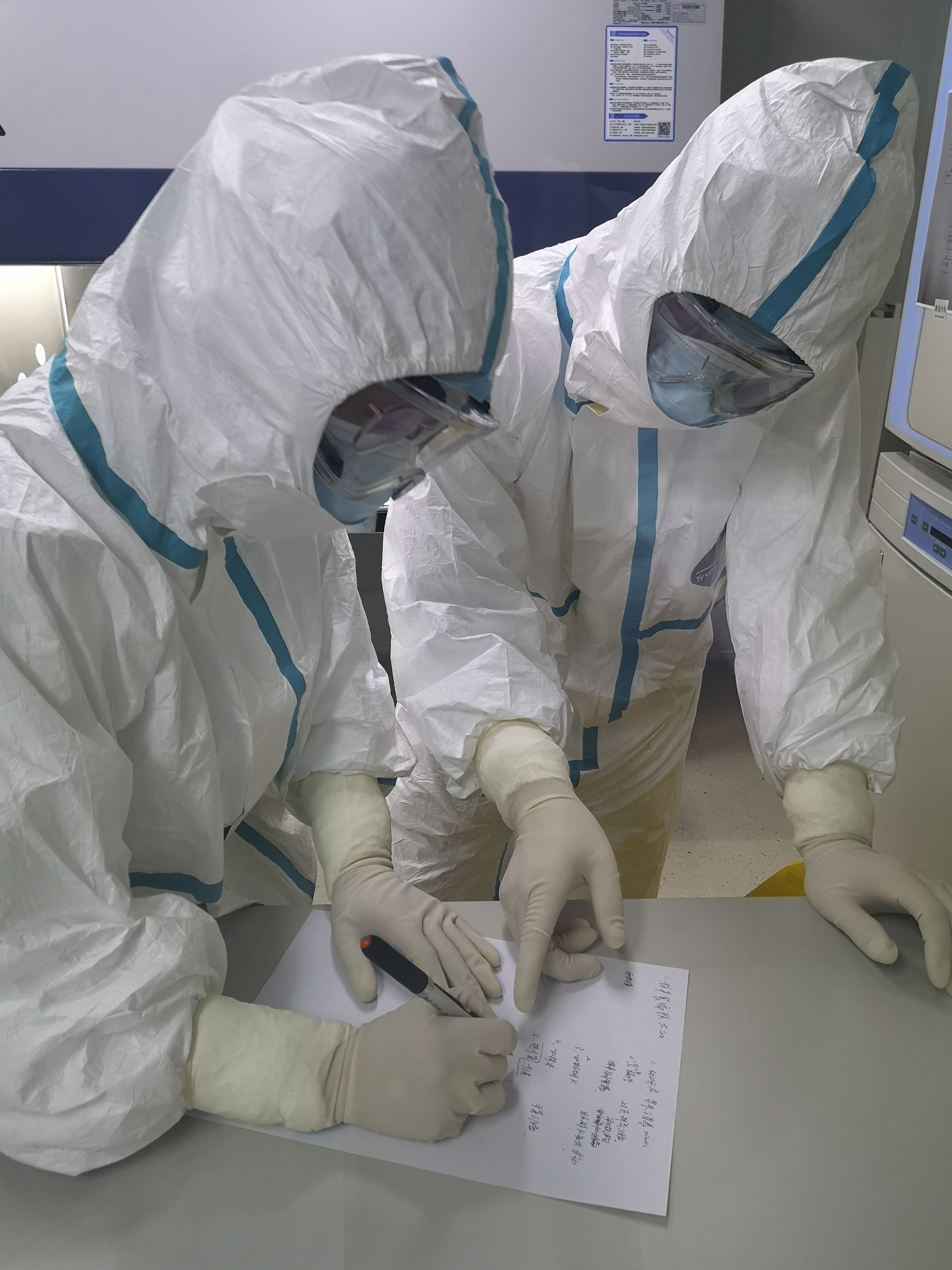 在科内医疗物资严重匮乏的时刻,检验科开展如此高传染性的病毒核酸检测本就是一场“赌博战争”,赢了,大家皆大欢喜,丝毫的疏漏便是自我生命健康的代价,没错,英雄就在你我身边!