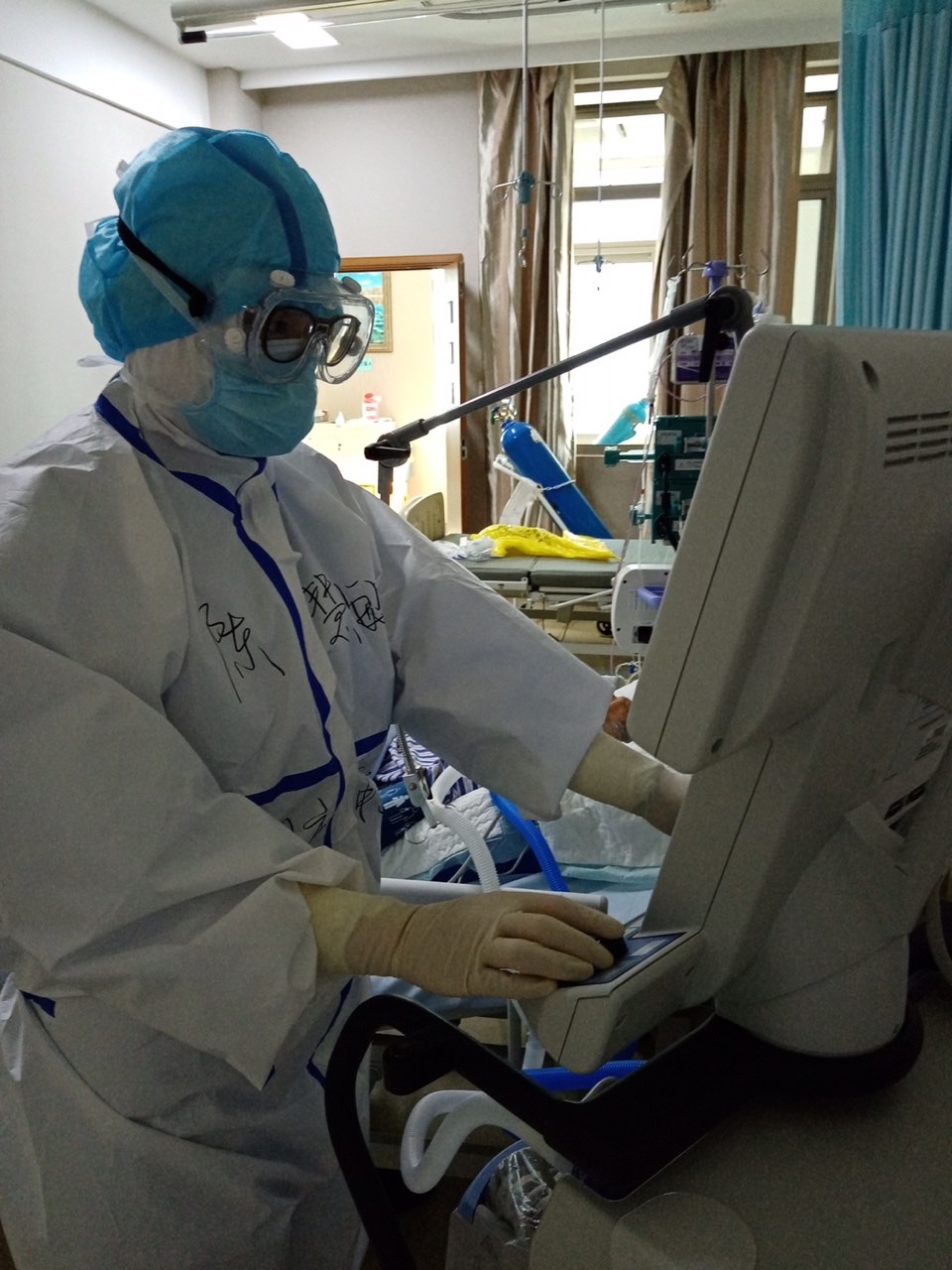 在隔离病房的每一天,她都在监护仪、输液泵、呼吸机间来回穿梭,14天时间也在换液体、倒废液、配药、翻身、吸痰、抽血、记录中溜走。她在请战书里这样写着:“没有人不害怕,但也总有人选择逆行,我想做有意义的事,成为有意义的人。”是的,她做到了,这件有意义的事,她做了快40天了。