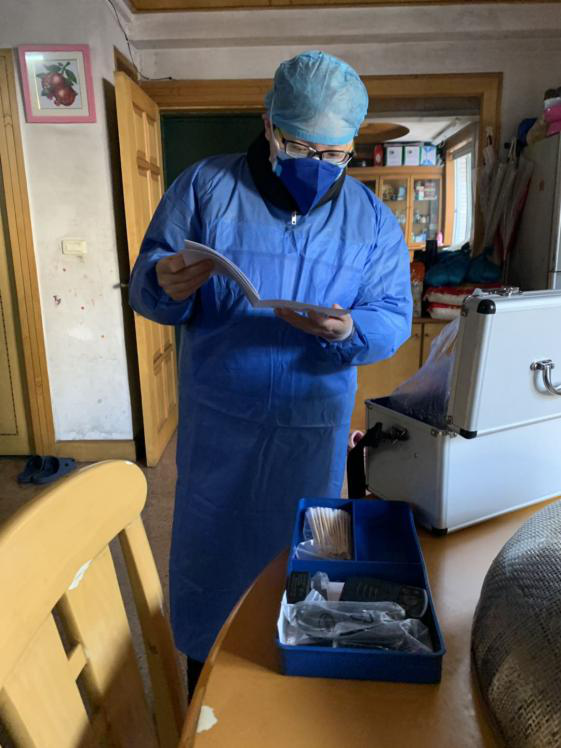 上周接到一例老年患者导尿管到期需上门更换的求助。孟盈盈护士长对接了有着20多年临床护理工作经验的康复四科护士长彭凌云,接到这个任务后,凌云护士长不假思索地接了下来。她说:“这个时候有患者需要我,我可以第一时间到,能给患者提供方便,我很开心。”