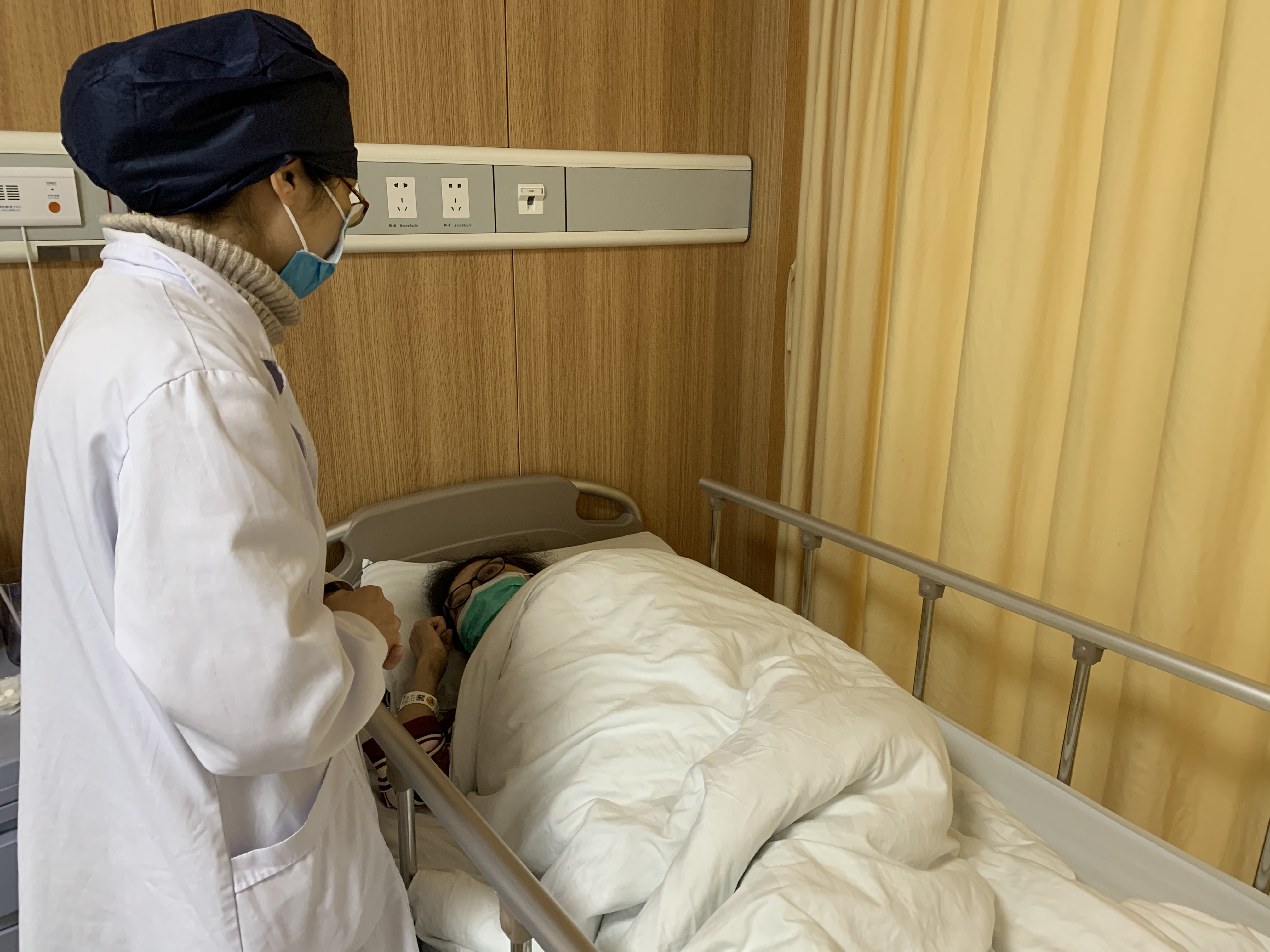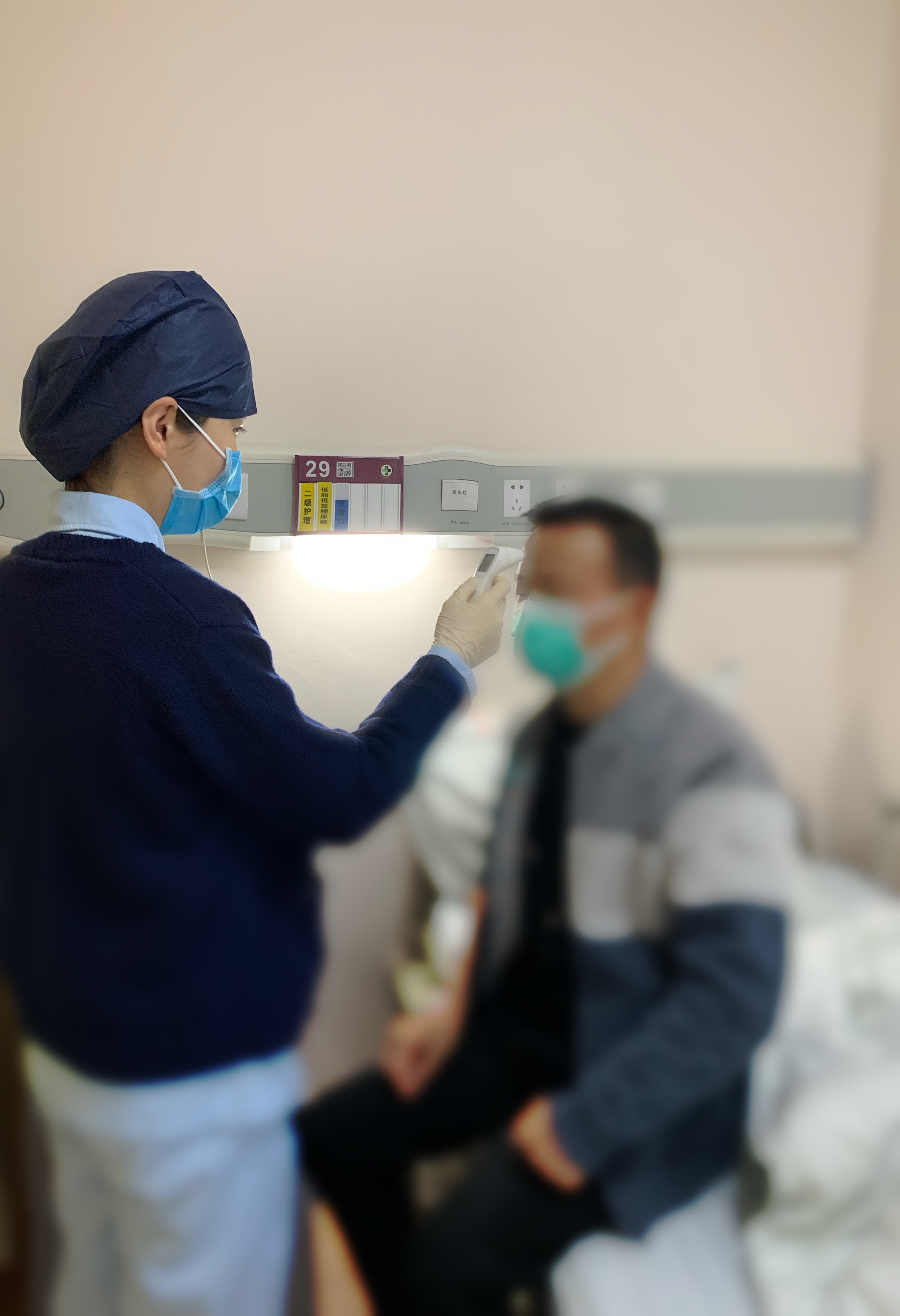 现在,我们的护士每日都会给病房患者及家属测量两次体温,定时给他们发放口罩,并且为有心理负担的患者做好心理疏导。医生们每日巡视病人,询问病情,调整治疗方案。护士们配合默契,有条不紊地执行着下达的医嘱。