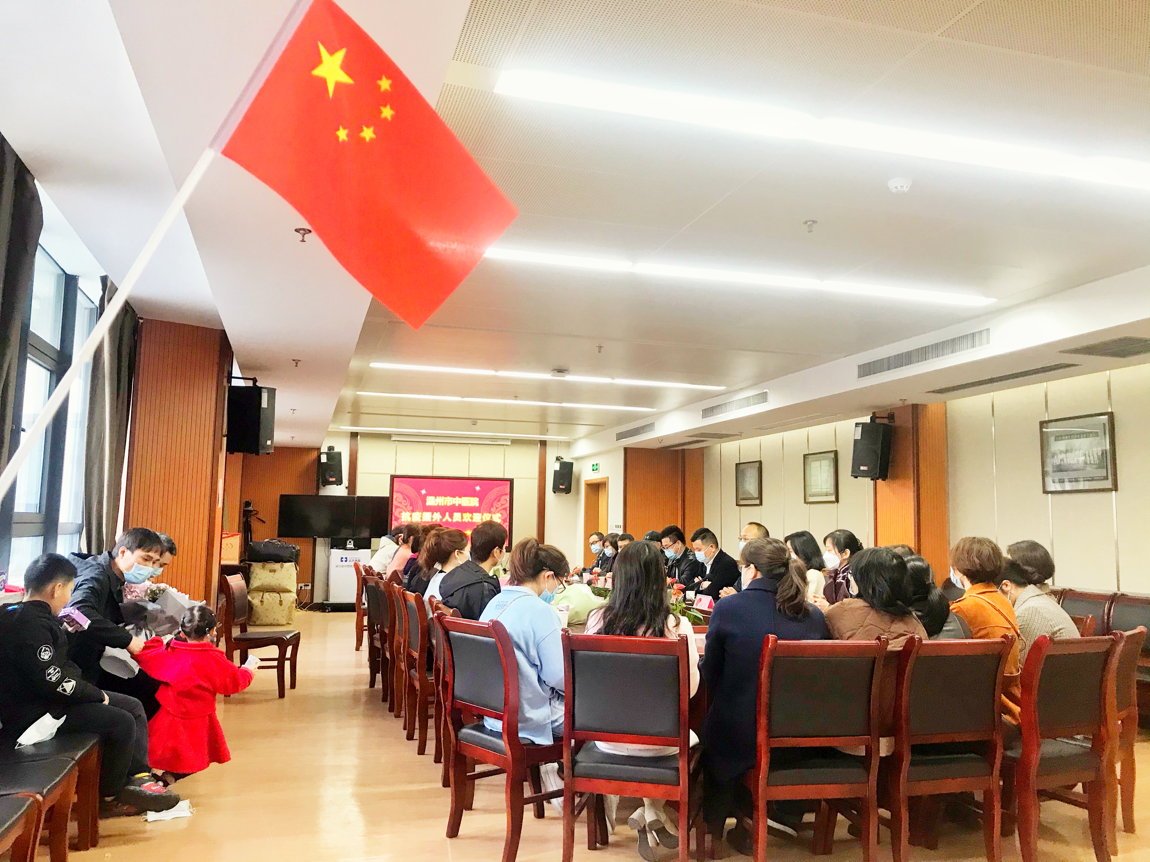 随后,抗疫援外人员欢迎仪式在医院综合楼5楼会议室举行,党委书记王庆来、院长朱文宗等全体领导班子、相关科室负责人及医院此次外派驰援的9位医护人员参加。