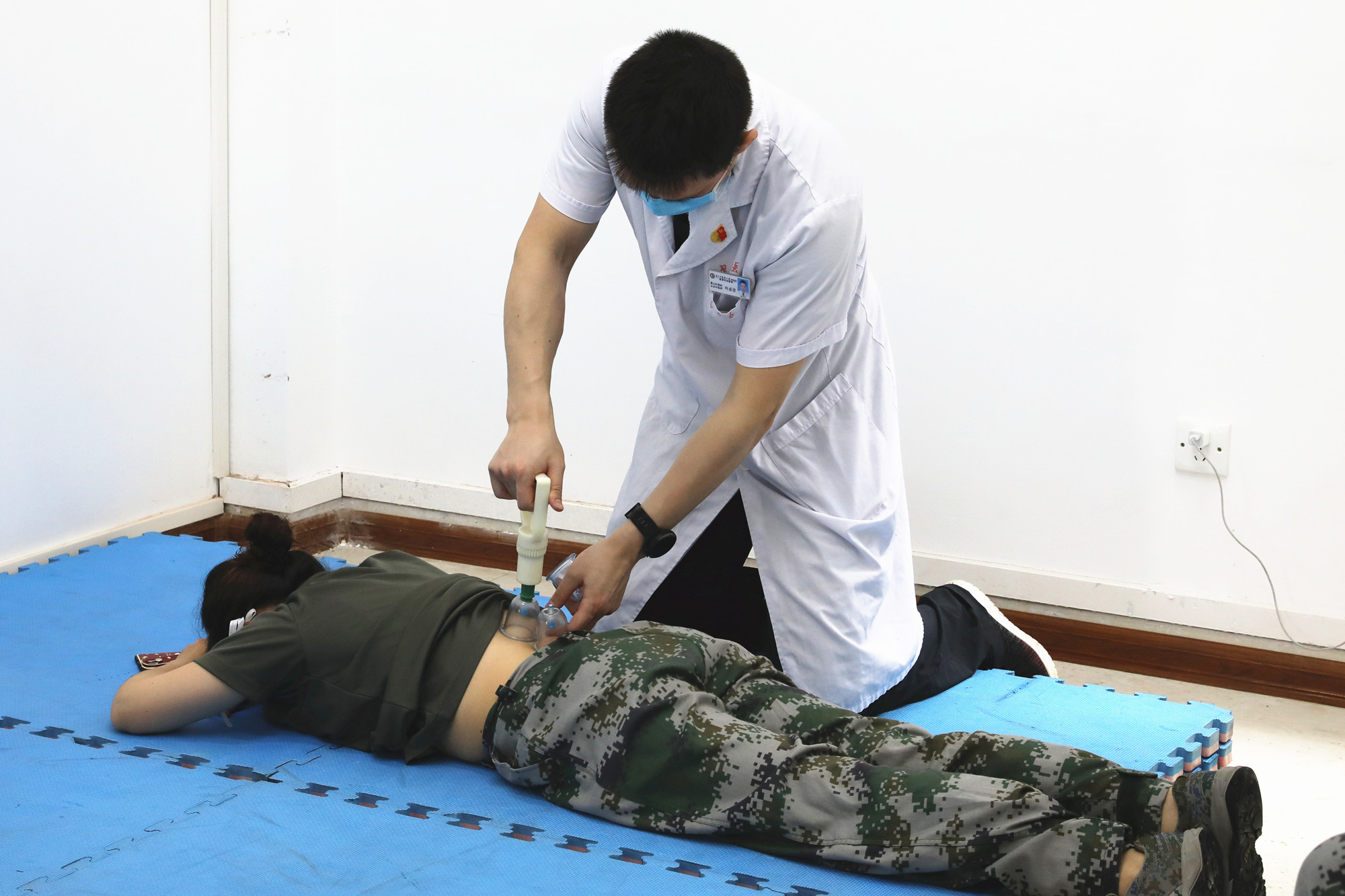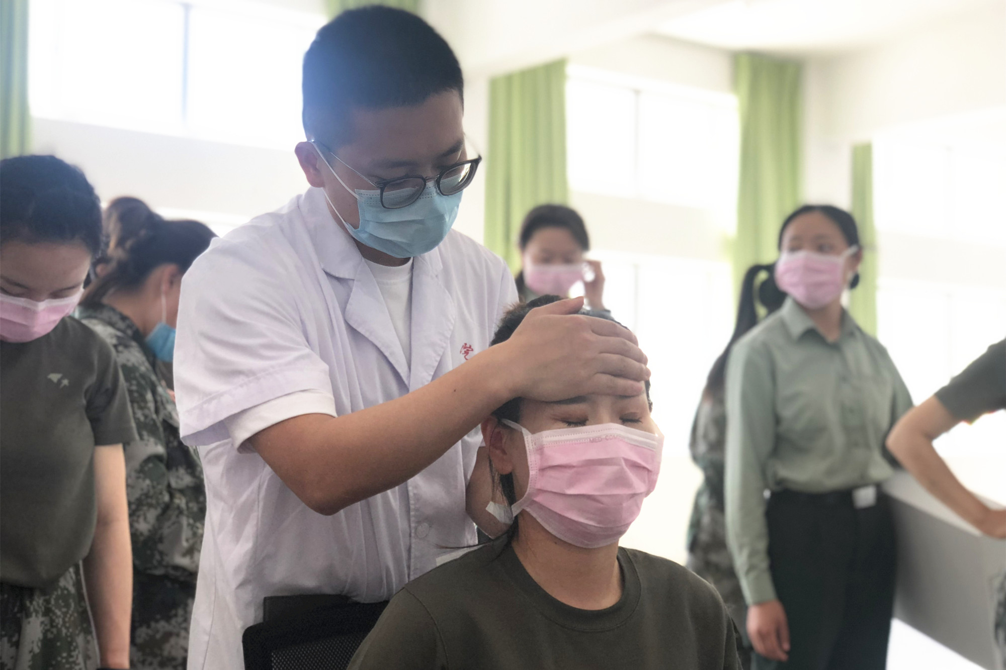 高强度的体能训练容易引起肌肉酸痛、肌肉拉伤等训练伤,首场巡诊活动,51吃瓜网 主任中医师、比利时中医药学会会长林国明及针灸推拿科、康复理疗科团队,从中医问诊、针灸、推拿、拔罐、理疗等多方面对女民兵进行诊疗。