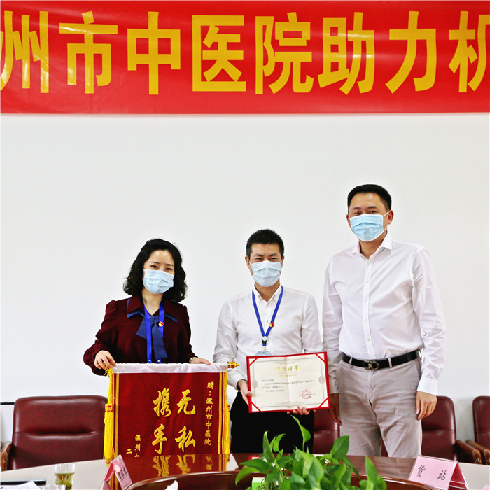 缪心军副院长强调了中医药在新冠肺炎治疗的优势,此次赠送的预防汤剂正是获省药监局批准生产的三种汤剂之一的益气固表合剂,主要用于预防新冠肺炎,也贴合温州地区的人群体质实际,对长期坚守在一线的工作人员来说,可以提高免疫力,增强抗病能力。
