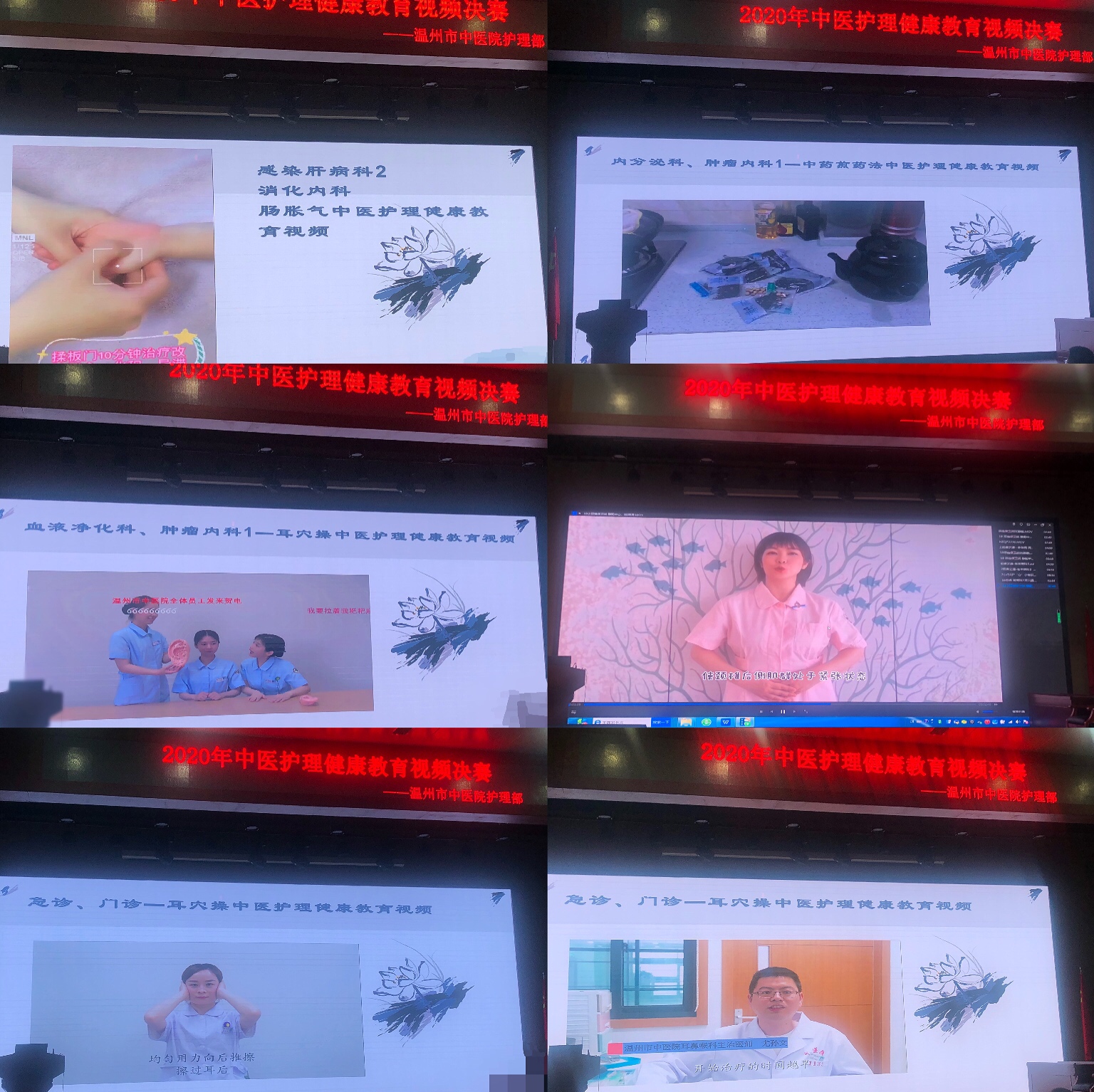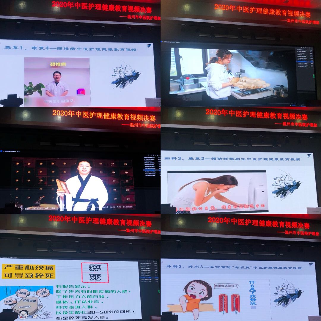此次决赛以“宣传中医药知识文化”为主题,丰富中医药养生保健知识,比赛内容注重自然科学与人文科学的结合,观赏性强,通俗易懂,便于效仿、增加记忆和传播,易于获得广大观众接受及喜爱。大赛于4月21日正式启动,采用初赛、决赛赛制。在各科室的全面配合下,护理部共接收到来自各科室护理人员提交的19个参赛视频。5月13日上午,护理部王慧静副主任、金红露副主任对所有参赛作品进行初步筛选,最终有12个作品入围决赛。