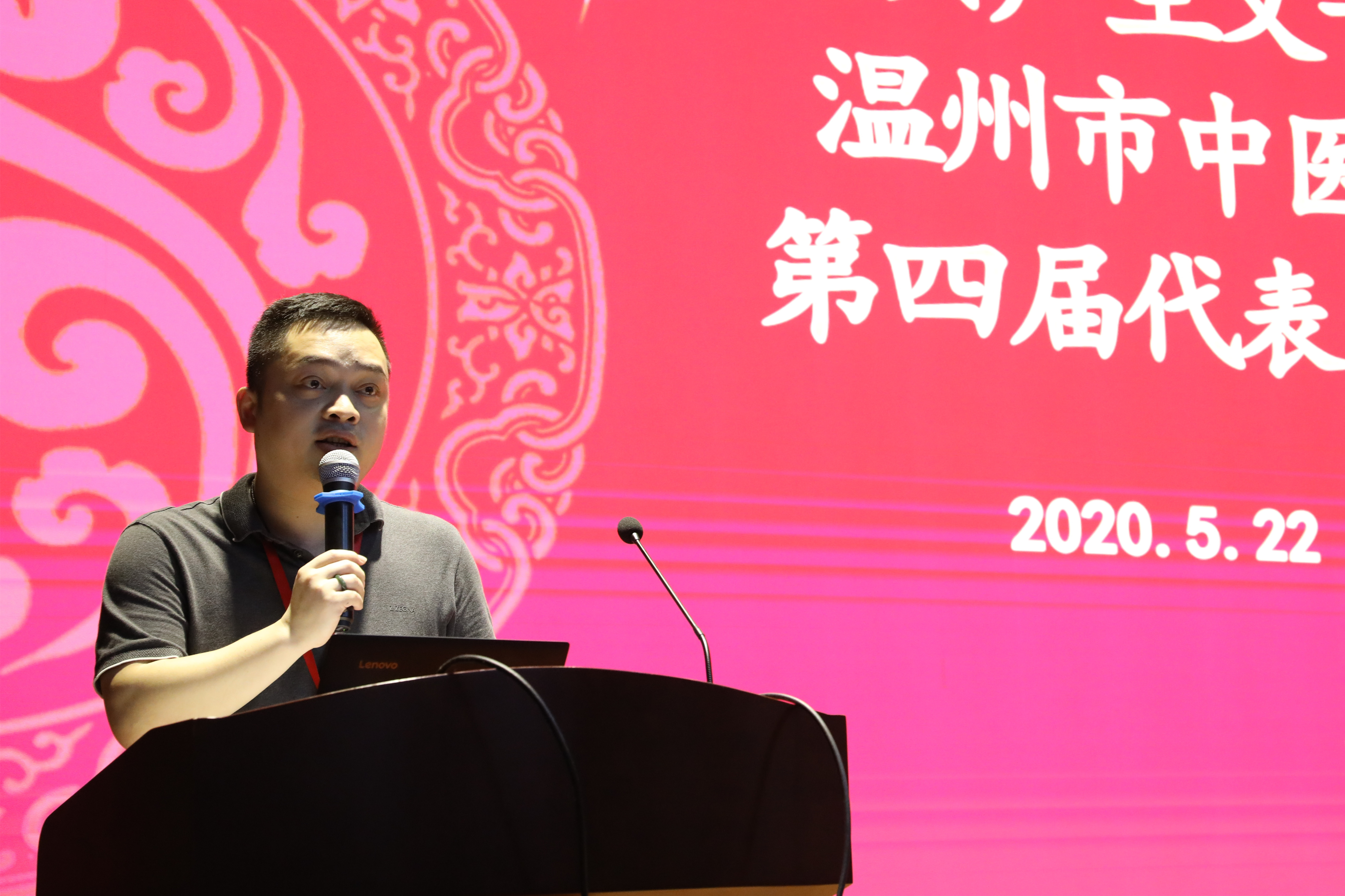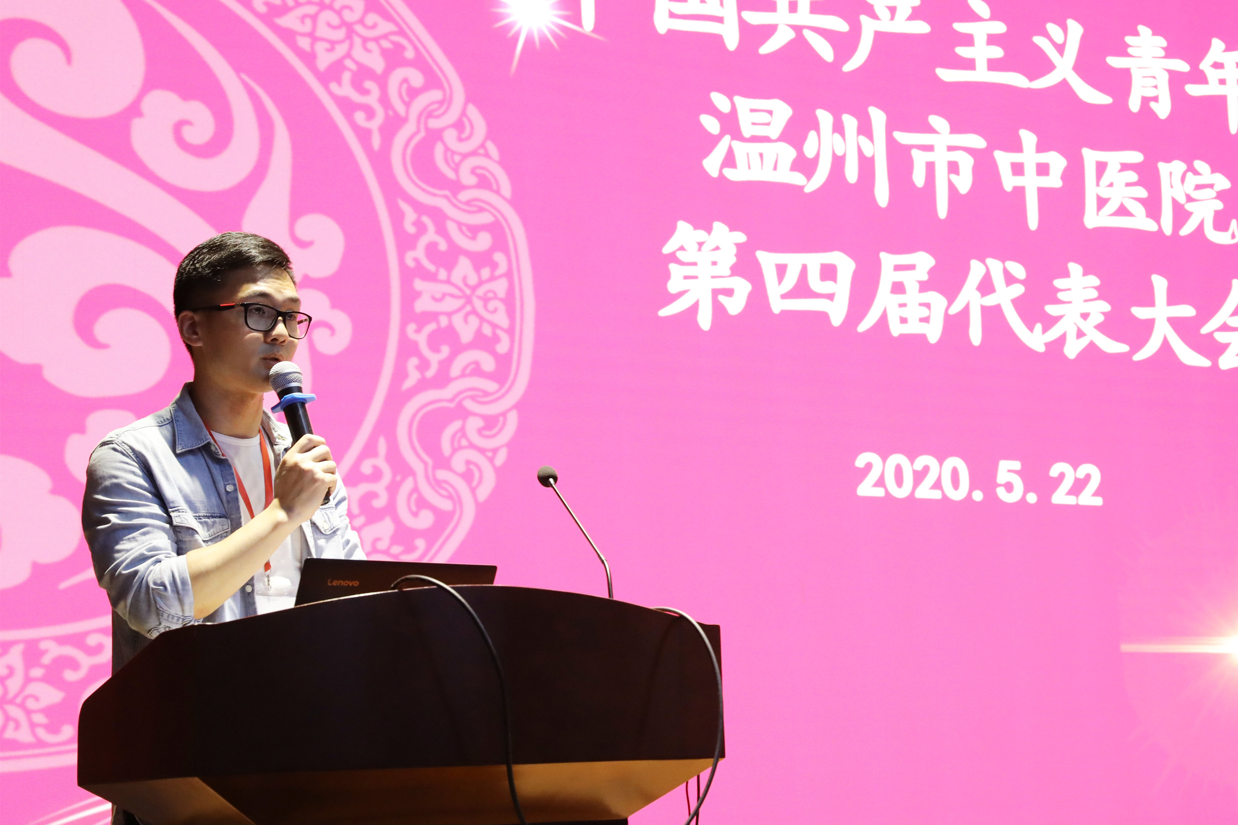 温州市卫健委团委委员朱凯发表讲话,他肯定了第三届团委的工作,并对抗疫第一线的青年表示了亲切的问候。