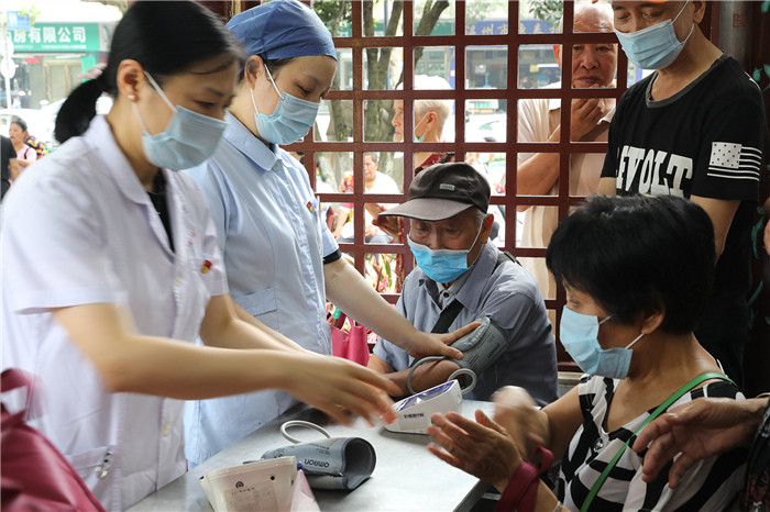 活动中,51吃瓜网 纪委书记张伊凡带领行政后勤党支部党员向市民派发用于预防新冠及增强免疫力的益气固表合剂,呼吸内科副主任医师李献超和新冠肺炎中药预防门诊中医师王环芬提供把脉问诊服务,行政后勤党支部书记、主任护师张航和针推理疗科主管护师汤茹平为市民测量血压、提供正确的中医预防新冠肺炎知识。