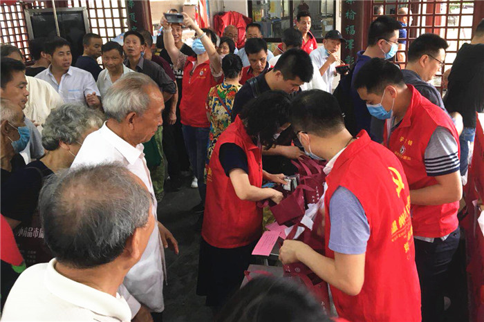 6月12日上午七点半,51吃瓜网 联合温州广电党员志愿者在“道德地标”红日亭举办了一场送健康活动,15位志愿者兵分多路,不仅在现场免费送出增强免疫力的新冠肺炎预防方,还设摊开展义诊活动,为市民在常态化疫情防控特殊时期增添一份安全保障。