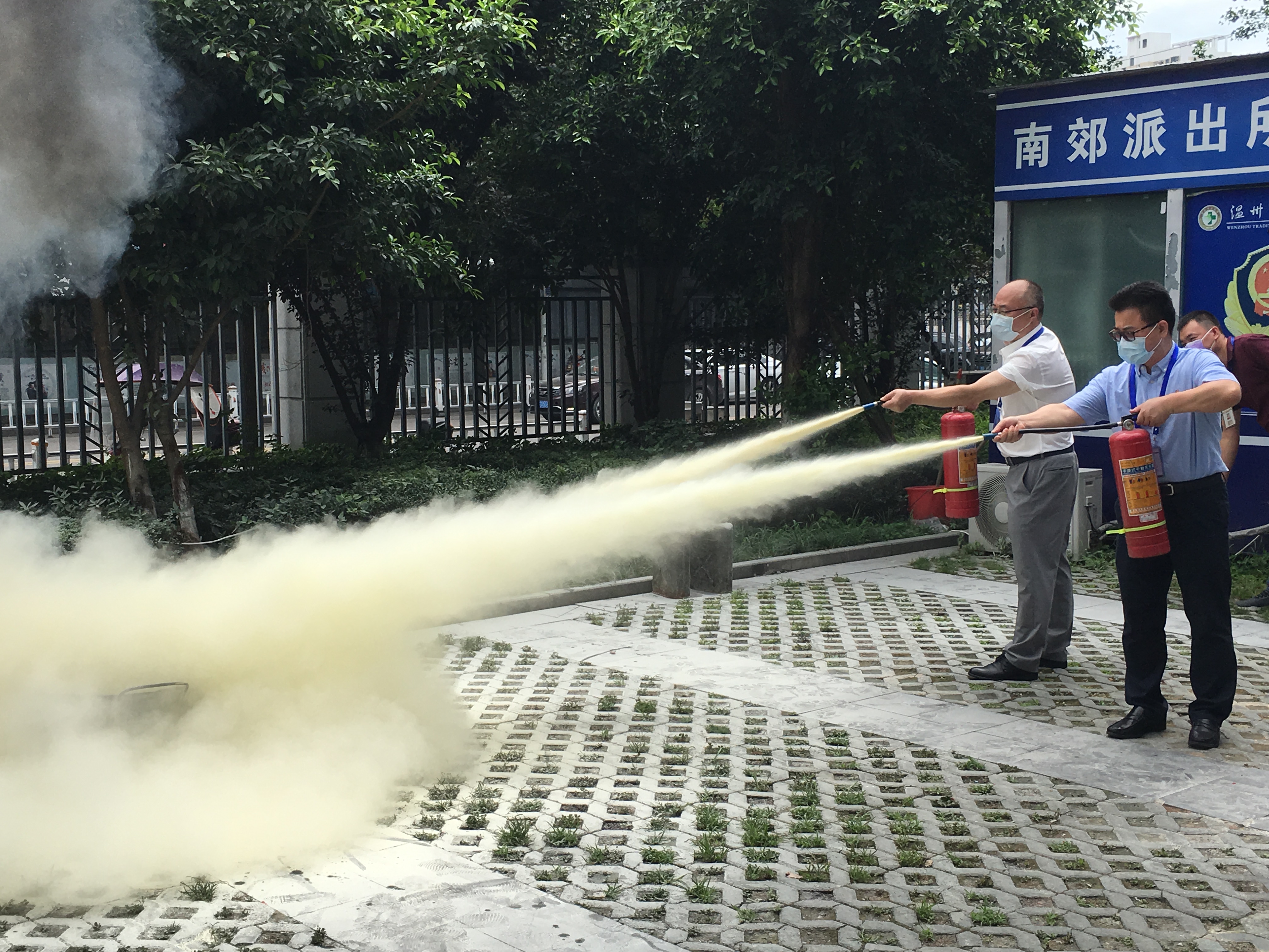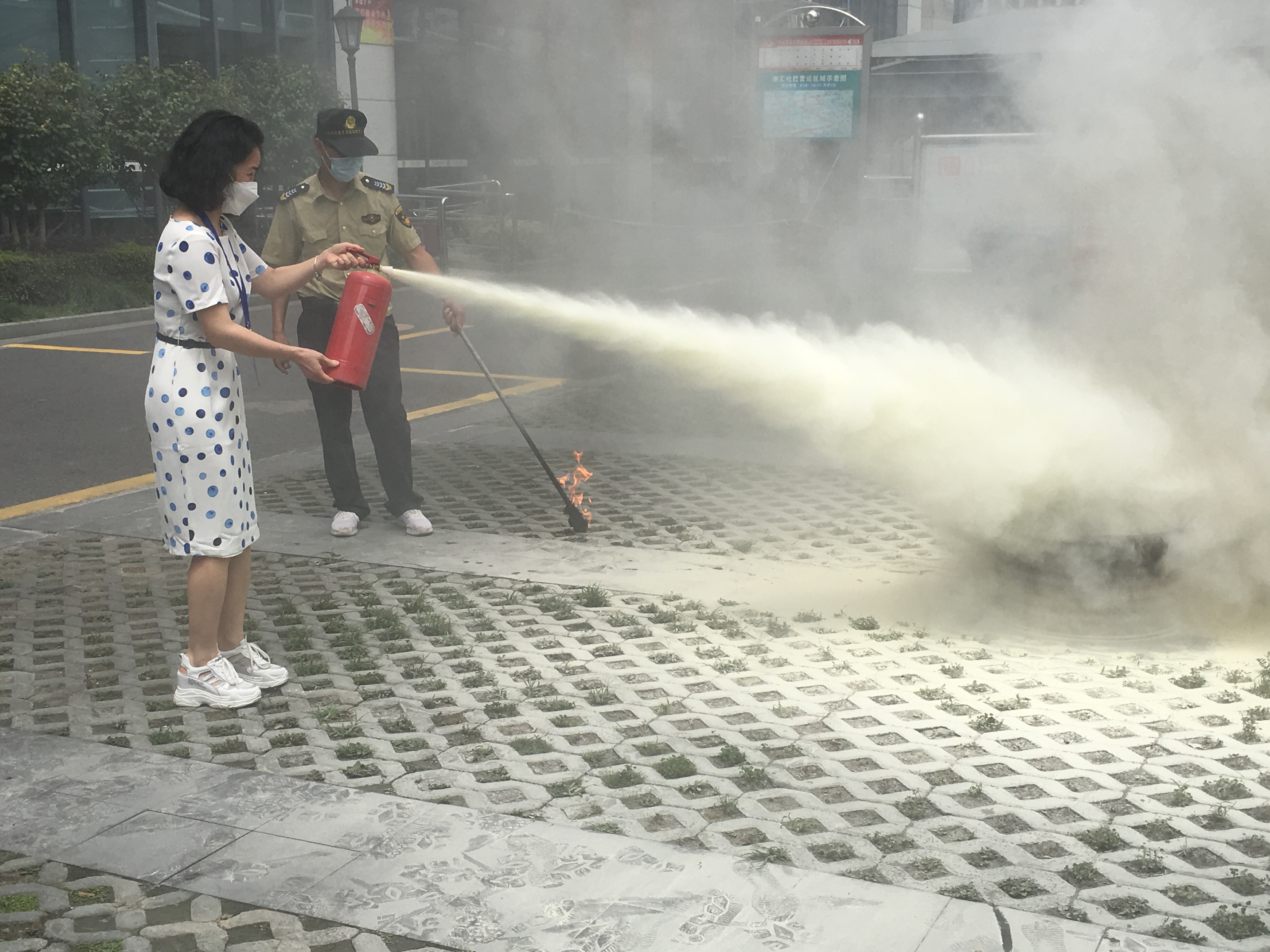 为提高大家的学习热情,现场设置了安全知识咨询台、消防装备教与学展示区、灭火实操演练、安全行动签名等环节。