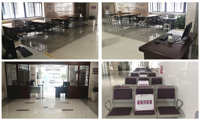 为迎接巨大的人流量,前几日,门诊人员也早早在五楼针灸推拿科布置场地、整理药材、划分出男女贴敷区域等。考虑到今年疫情情况,门诊也做足了防疫工作,在候诊椅上摆上保持距离的提示牌,地上贴上一米线标示,防止患者拥挤扎堆。