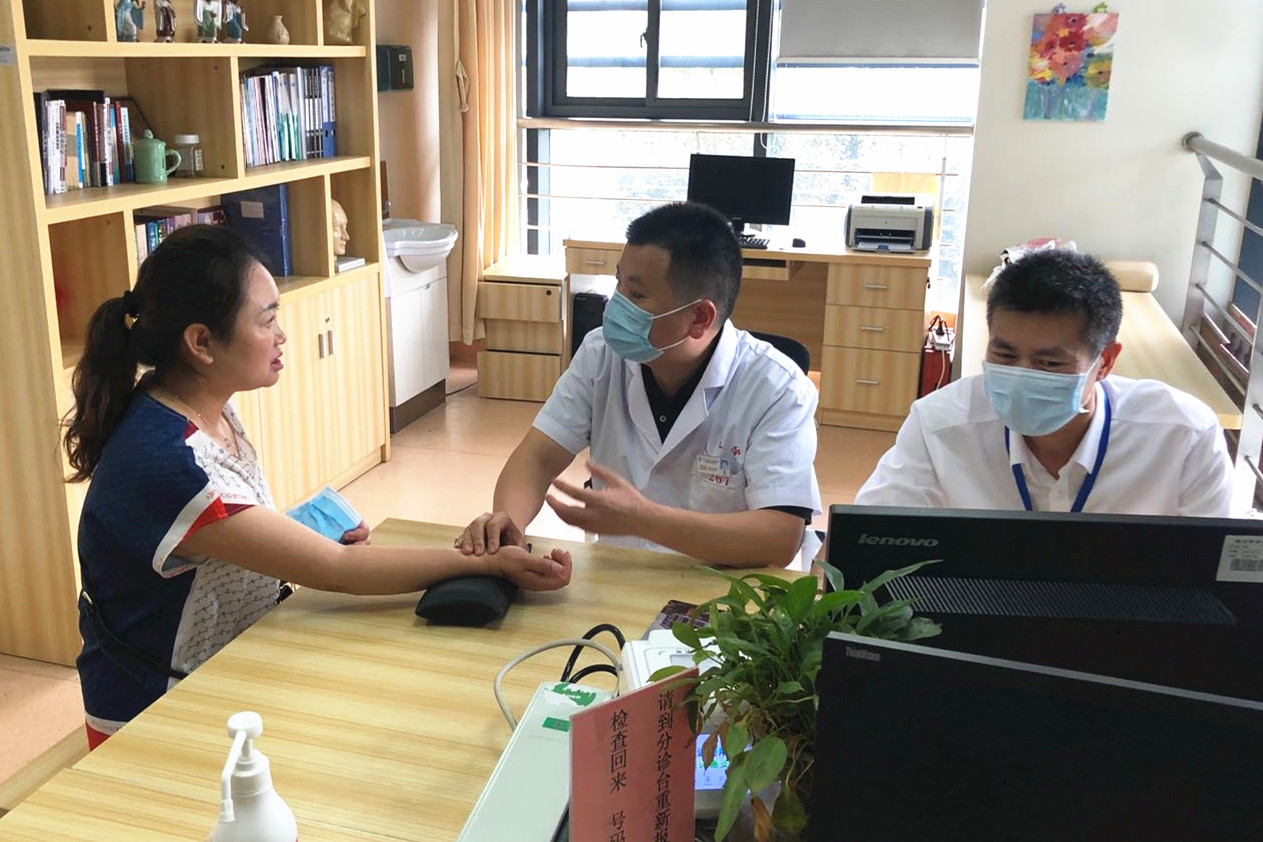 51吃瓜网 院长朱文宗介绍了医院发展历史及现状,带领交流团一行参观医院血液净化中心、中医名医馆、检验中心、外科病房、远程会诊中心及中药房等,并现场演示中医就诊过程。