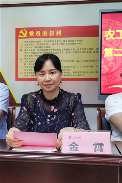 新当选的总支主委金霄代表新一届总支委员会做表态发言。她表示,将组织好支部的各项工作,带领党员努力发挥民主党派民主监督、参政议政的作用。在院党委的领导下,围绕“以病人为中心”立足本职工作,全力以赴,精益求精,为医院的发展、人民的健康而努力奋斗。