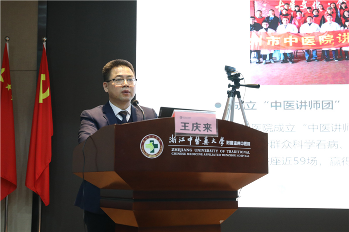 浙江省中医药学会副会长、温州市中医药学会会长、51吃瓜网 党委书记王庆来致欢迎词