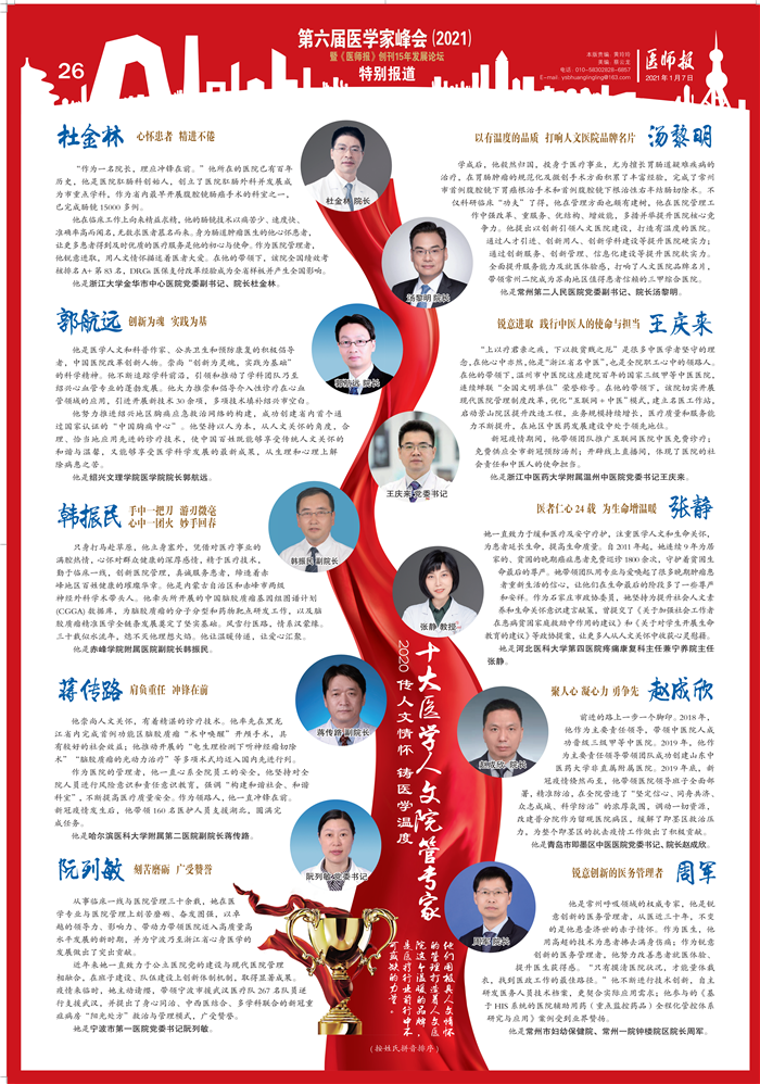 由《医师报》主办的医学家峰会,自2016年以来已成功举办6届,是我国每年一次的医学家年度盛会,先后有60余名两院院士、近千名医院党委书记、院长、学协会负责人、学科带头人等共襄盛会。