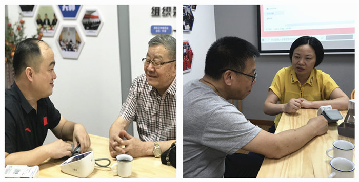随后支社委员张胜靖和张贻雯为老社员测量血压、进行健康咨询,为老社员解决健康方面的问题。