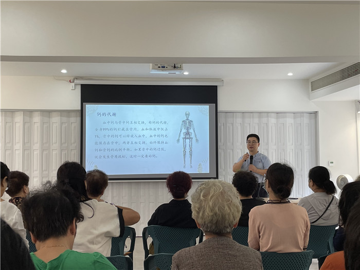 党委书记王庆来在水心怀老院开展了一场以“骨质疏松防治”为主题的健康讲座,以提高广大中老年人对骨质疏松的认知,了解骨质疏松的起因和危害。