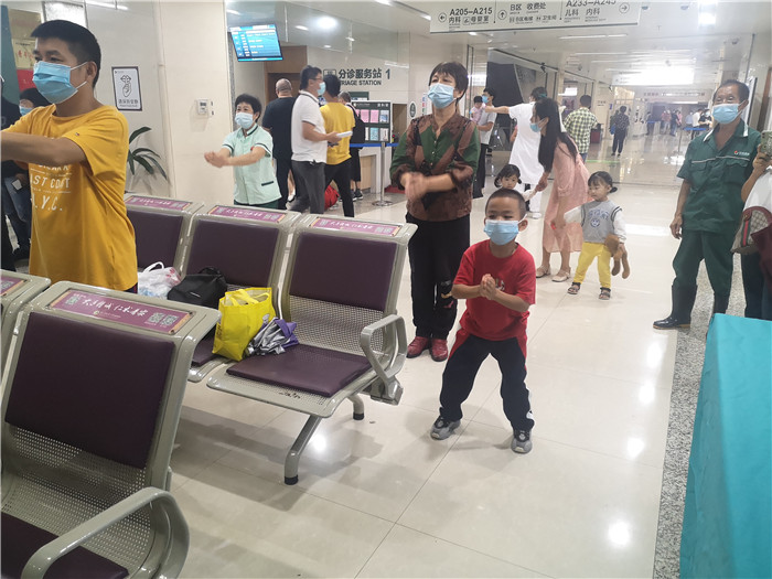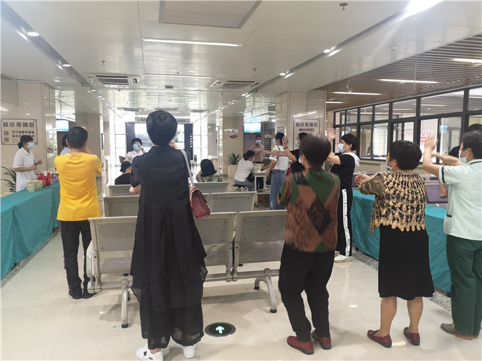 活动从中医养生保健操开始,门诊护士带领大家通过拍打经络,让全身血液沸腾起来,起到健康保健的作用,连小朋友都被吸引参与其中,一套拍打操下来,很多人都出汗了。