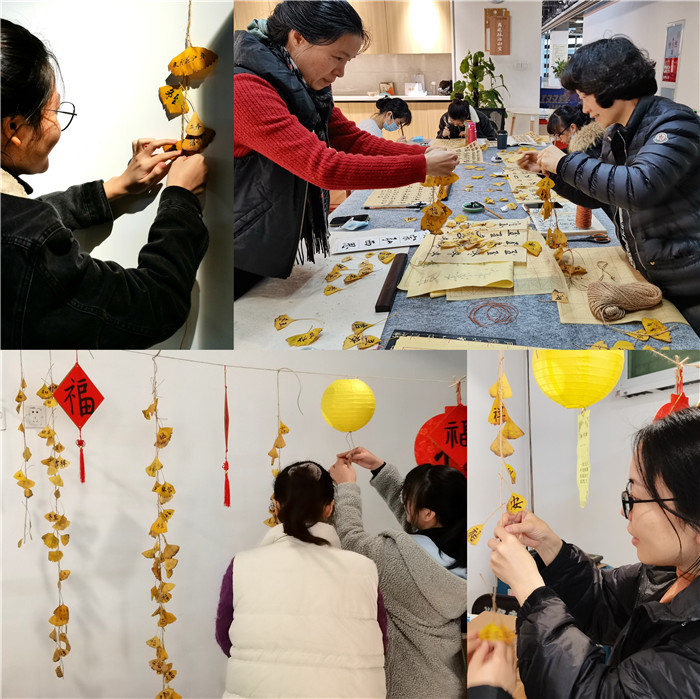 小小的叶子脉络起伏,墨黑在叶黄的衬托下,更显深沉儒雅,大家在耳鼻喉科医师黄亚的指导下,先将拾来的银杏叶洗净、晾干、压平,再依据各自喜好,写上24节气或吉祥的祝福,温暖了自己,也给这个冬至增添了满满的仪式感。