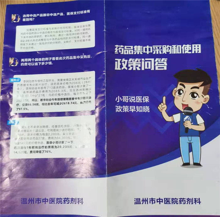 药剂科通过宣传彩页、宣传手册等,在各个层面宣讲“4+7”带量采购政策;