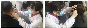 中医操作(耳穴埋豆)利用小小的“珠子”贴敷在耳内的穴位上,通过刺激穴位达到相应的缓解预防。