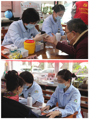 两位护士长金微微、雷叶静为患者提供耳穴埋豆、穴位贴敷等中医治疗方法改善失眠症状。