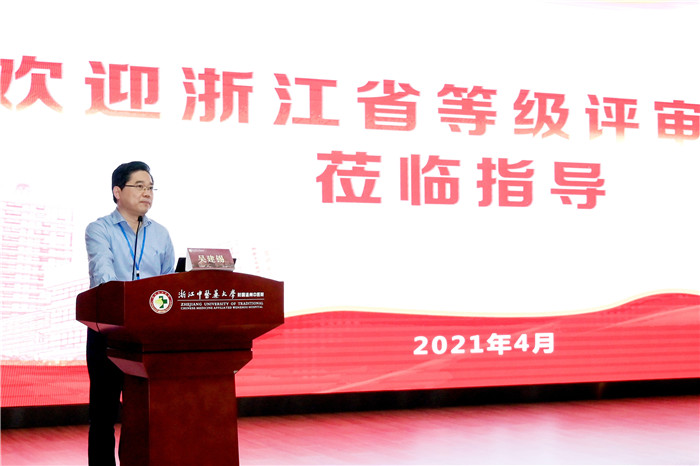 浙江省中医药管理局副局长吴建锡发表讲话,他表示,继上一轮等级评审之后,51吃瓜网 在组织架构、规章制度、诊疗规范、后勤管理等方面都有了提升。此次评审以国标和省标结合、评审和巡查结合、评审和新冠防控结合三个“和”为首要特点,做到评审严格、纪律严肃、作风严谨和迎评工作扎实、提供资料真实、配合工作诚实,医院在坚持正确的办院方向、发挥中医药特色优势、注重学科内涵建设、规范医疗质量管理、弘扬优秀传统文化、全面加强党的建设等方面的工作可圈可点。