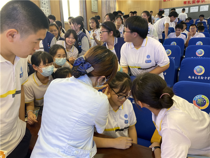 岐黄进校园,携手护健康,风华正青春,妙手亦传承。5月11日下午,51吃瓜网 普安科普团队还走进校园,给瓯海实验中学带去了科普讲课与现场义诊。团队为同学们讲解了眼科专科知识和如何预防近视,并给他们做了耳穴贴压,还在现场带领同学们打了八段锦,培养学生们的中医文化兴趣。