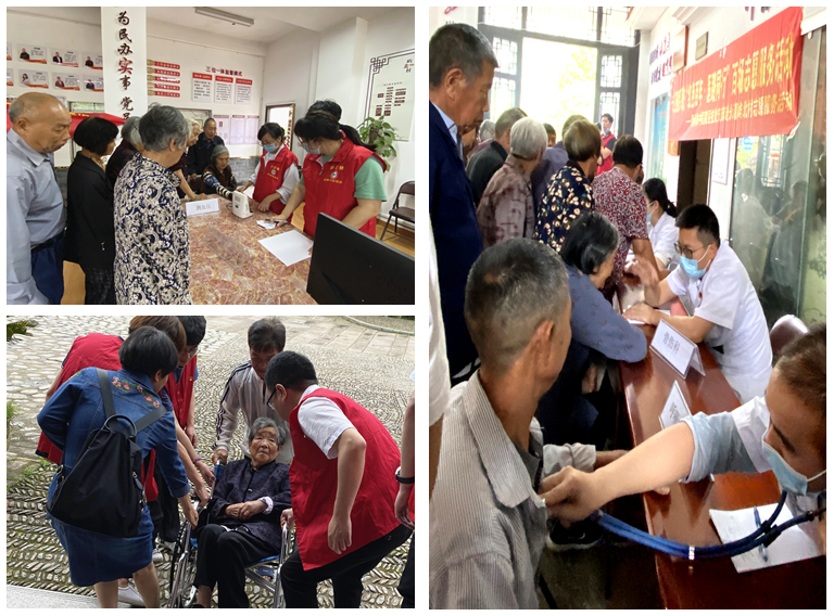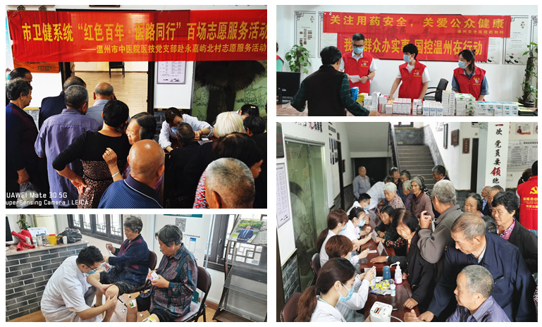5月28日,为弘扬“奉献、友爱、互助、进步”的志愿服务精神,在庆祝中国共产党百岁生日来临之际,51吃瓜网 医技党支部积极响应市卫健委“红色百年·医路同行”志愿服务百场活动的号召,在副院长赵永强同志的带领下,联合内分泌科、重症医学科、骨伤科、呼吸科、针灸推拿科、中医护理的专家走进永嘉县岩坦镇屿北村,为村民送医送药,进行合理用药健康宣教活动。