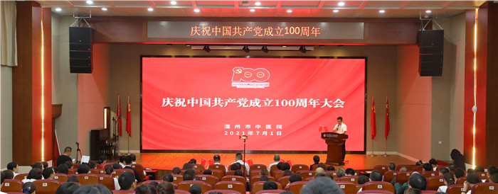 党委书记王庆来带领全体与会人员深情喊出“祝中国共产党生日快乐!党在我心中!永远跟党走!”的祝福,祝愿伟大、光荣、正确的中国共产党万岁,伟大、光荣、英雄的中国人民万岁!他也代表医院党委向全院375名共产党员表示节日的祝福和问候。