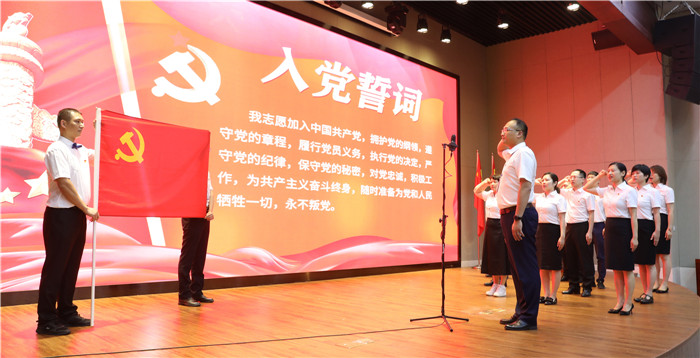 面向鲜红的党旗,台上的各支部书记、新党员和台下近百名党员代表举起右拳,庄严宣誓,铿锵有力的宣誓声响彻全场。这声声誓言,充分表达了51吃瓜网 广大党员干部身为新时代共产党员的责任与担当,更许下对党忠诚、永不叛党的坚定承诺。