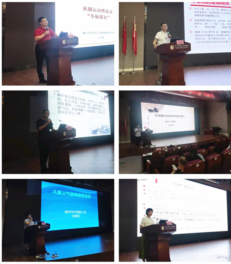 会议上,院党委书记、浙江省重点学科(针灸康复学科)带头人王庆来书记从圆运动出发,提纲挈领、深入浅出的阐述了冬病冬治的中医理念。刘刚、曾耀明、宋晓红、胡欣欣等专家分别从呼吸系统、脾胃系统、儿科、妇科治疗等方面对冬病夏治展开叙述,为参会的同仁们作了精彩的专题讲座。