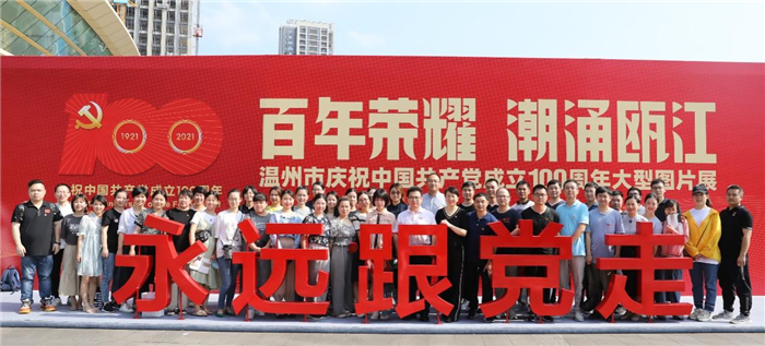 第三站是温州大剧院的“百年荣耀·潮涌瓯江”温州市庆祝中国共产党成立100周年大型图片展。此次展览是温州市庆祝中国共产党成立100周年和党史学习教育的重要活动,展厅分“红动浙南 开天辟地起宏图”、“艰难探索 改天换地兴大业”、“改革开放 敢为人先创伟业”、“潮涌瓯江 经天纬地聚伟力”四个单元。在党委书记王庆来的带领下,全体人员重温了入党誓词。各支部纷纷借此机会开展“学党史、感党恩、当先锋”主题党日活动。