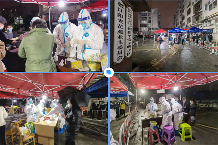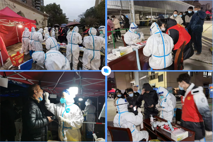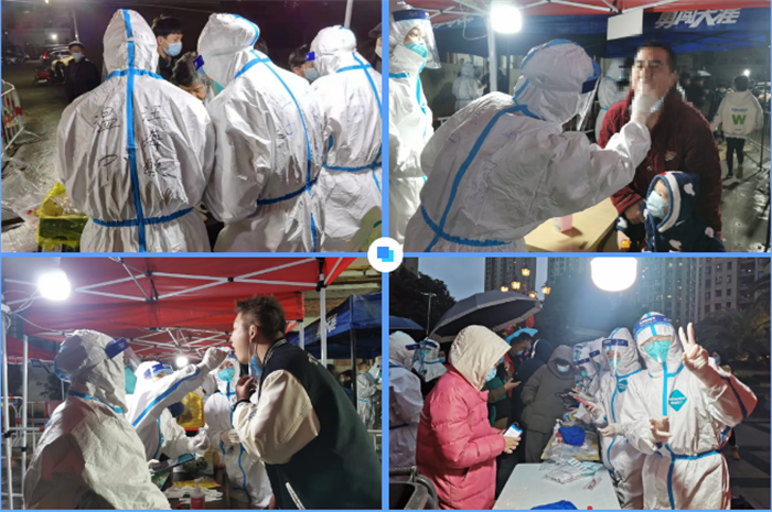 扫码、采集、消毒……这样的工作,医护人员一直从下午重复到深夜。防护服虽然不透风,但依然难抵冷雨和低温,再加上长时间站立,持续几个小时的采样,大家的双手和双脚早就冻得不听使唤甚至无法伸缩,但他们没有抱怨一句,依旧满怀热情地投入工作。“我不累,让我再多采会儿!”这是接替队友时,最常听到的一句话。每到换岗时间,大家都不愿停下来休息,想在最短时间内采集到更多核酸样本。