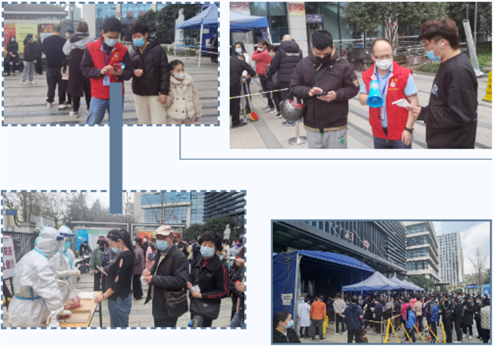 为应对院内突然增加的核酸采集量,医院每个职能科室都派出人员,做好现场协助、引导的工作。