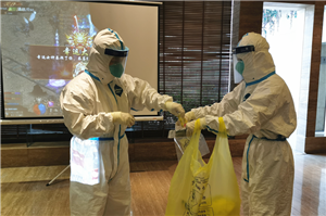 演练以“全员防控、全流程防控、医患同防”为原则,主要以实战演练结合桌面推演完成,设立了六个场景,包括:接到任务后紧急出发、标本安全规范化采集封包、标本的安全转运交接,正确规范化穿脱防护物品、返回酒店后的消杀处理、封闭化管理和记录总结、客观评估。