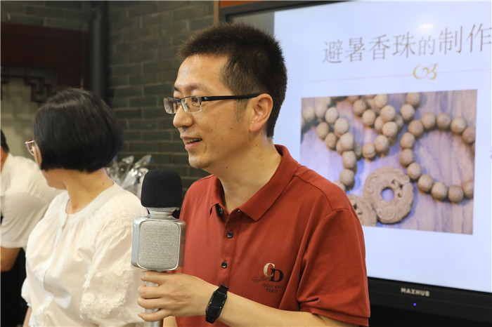 随后,耳鼻喉科主治中医师黄亚带大家进入了制作驱蚊手串的体验环节。在黄亚老师的介绍和指导下,大家齐动巧手,其乐融融,以3人为一组,在事先磨粉混合的药粉中加入适量纯净水,再和匀揉搓成大小相等的珠子。尽管对工艺要求并不严格,但大家都很认真地对待,“能自己动手做一串手串,还能闻药香防蚊虫,这种体验太珍贵了!”