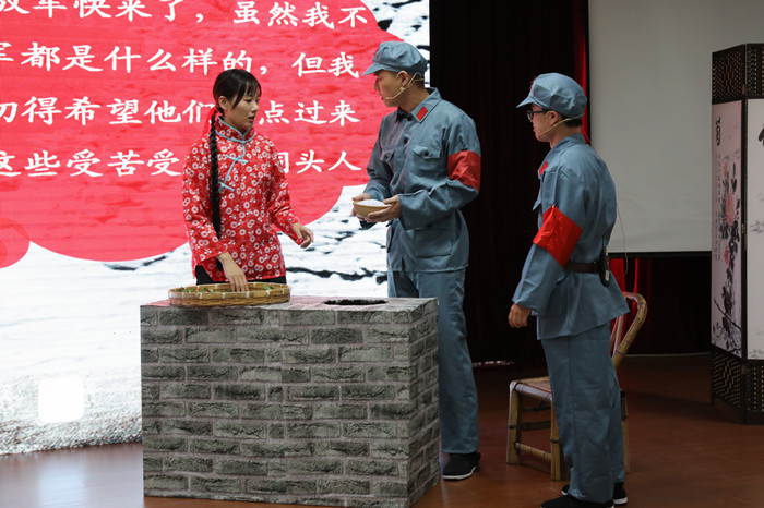 医技党支部选送的《映山红》讲述了小英雄潘冬子在残酷的斗争中不断磨练自己最终成为一名红军小战士的故事;
